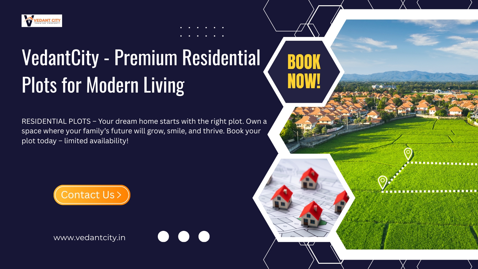 Vedant City is a thoughtfully planned residential plotted development designed to give families a perfect place to build their dream homes. Located in a fast-developing area, Vedant City offers a peaceful environment, wide roads, and lush green zones — making it an ideal choice for both living and investment.